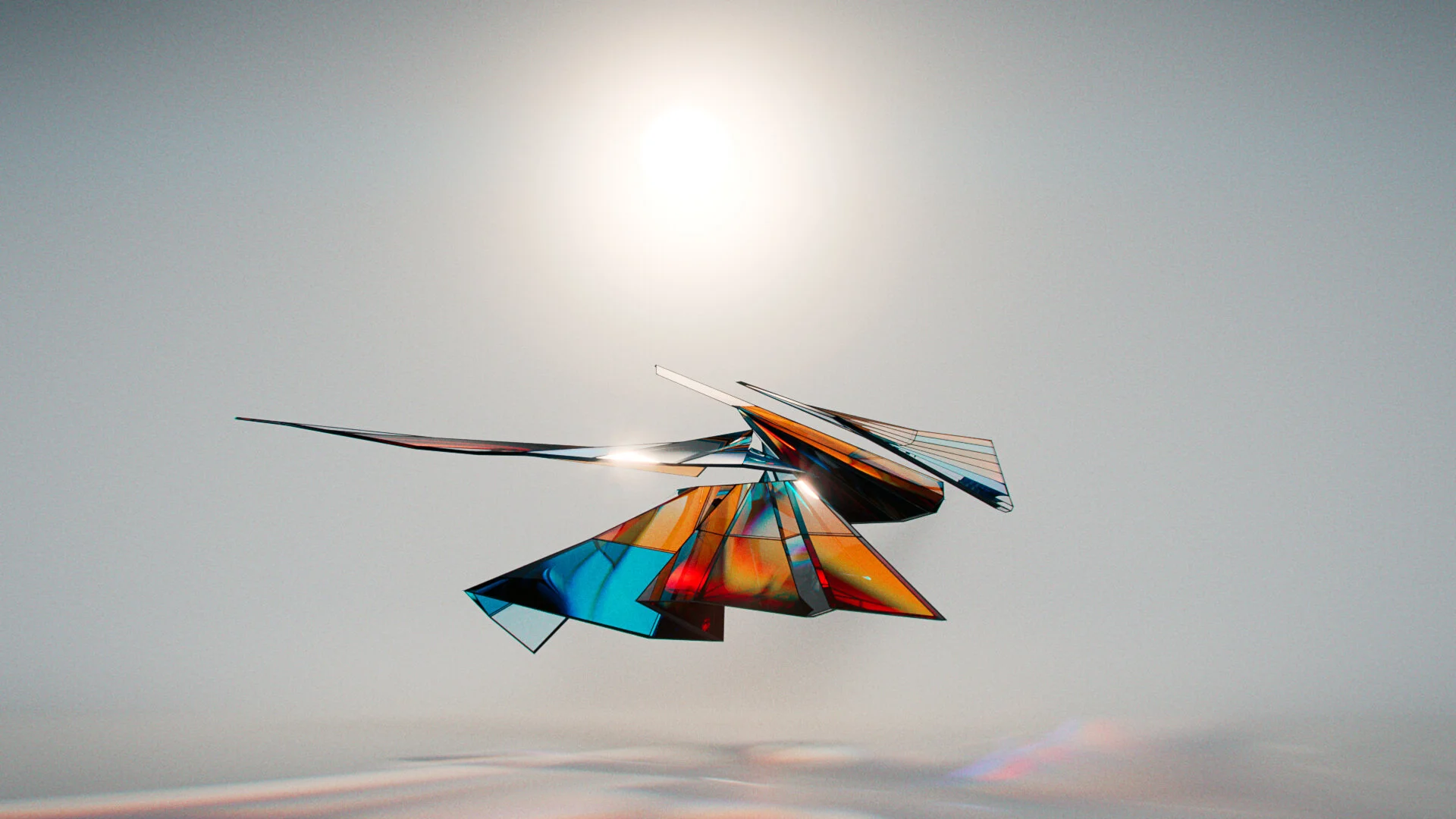 I’d been meaning to cover caustics for a while, so these overlapping forms were a good chance to experiment. I assigned random colours to each segment, then fed those attributes into the glass transmission and pumped up the dispersion.